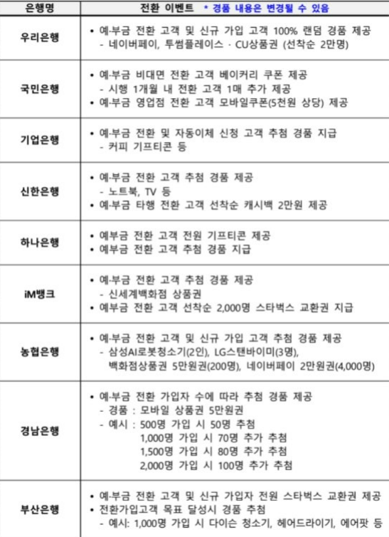 - 현재 자기 은행 전환 유도를 위해 은행별 각종 이벤트 진행 중