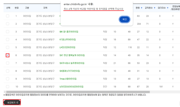✅ 4. 어린이집 비교 선택 가능(비교하기 클릭)