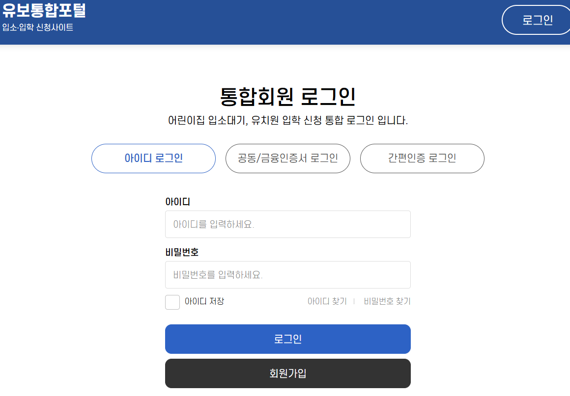 교육부에서 2024년 11월 1일(금)부터 '유보통합포털' 사이트를 개설하여 2025년도 어린이집 및 유치원 신입생 입소 입학 신청 온라인 서비스를 시작합니다.